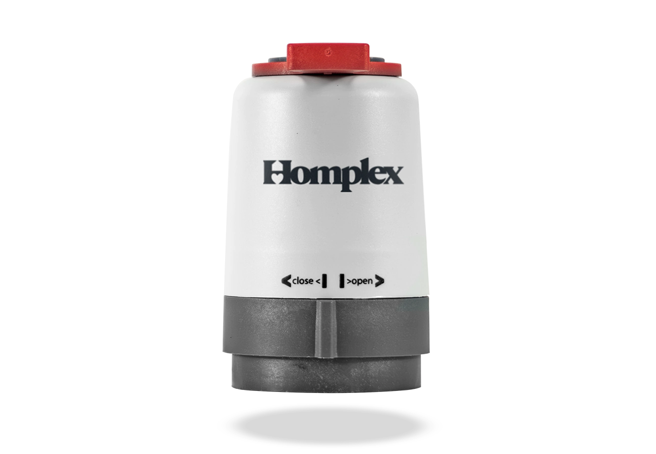 Actuatorul Homplex 66 Servomotor (actuator) electro-termic, cu poziție normal închisă, constituie componenta cheie care guvernează funcționarea sistemului de distribuție a agentului termic în cadrul instalațiilor de încălzire prin pardoseală.