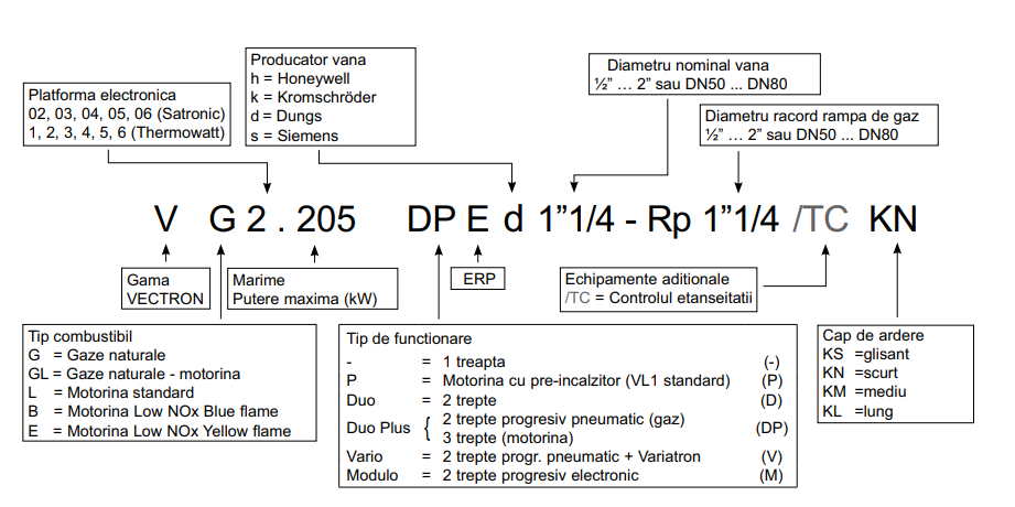 § Tip functionare: 2 trepte progresive (modul electronic) - gaz / 3 trepte - motorina.