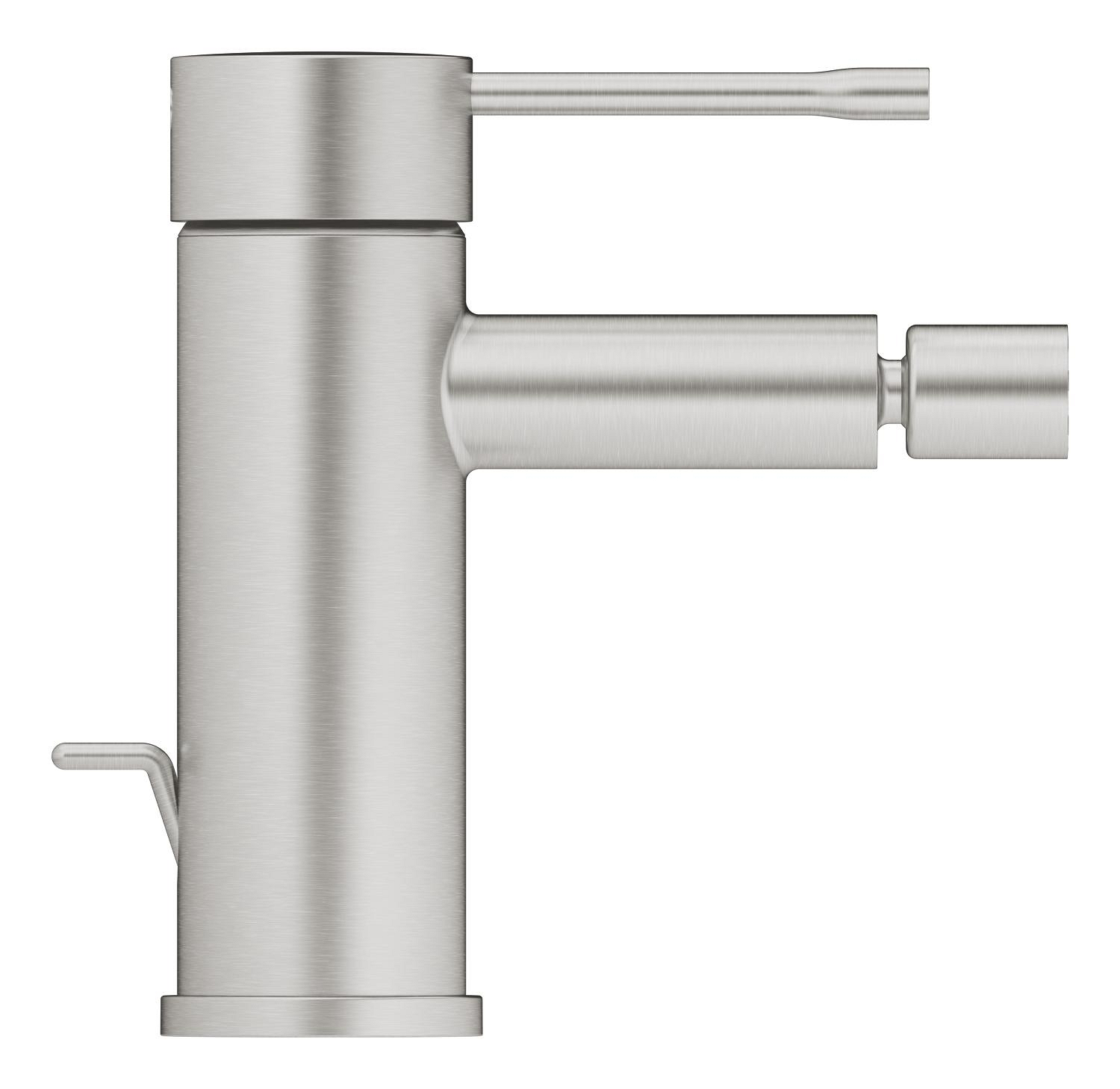 Baterie bideu Grohe Essence 1/2", monocomanda, levier metalic, cartus ceramic, limitator de temperatura, evacuare cu tija, crom mat