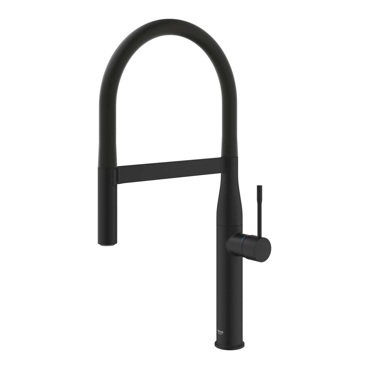 Baterie bucatarie Grohe Essence sink dus profesional pipa medie, monocomanda, pipa pivotanta, pipa extra inalta, tip C, cartus ceramic, dus extractabil, 2 functii, montaj pe blat, negru