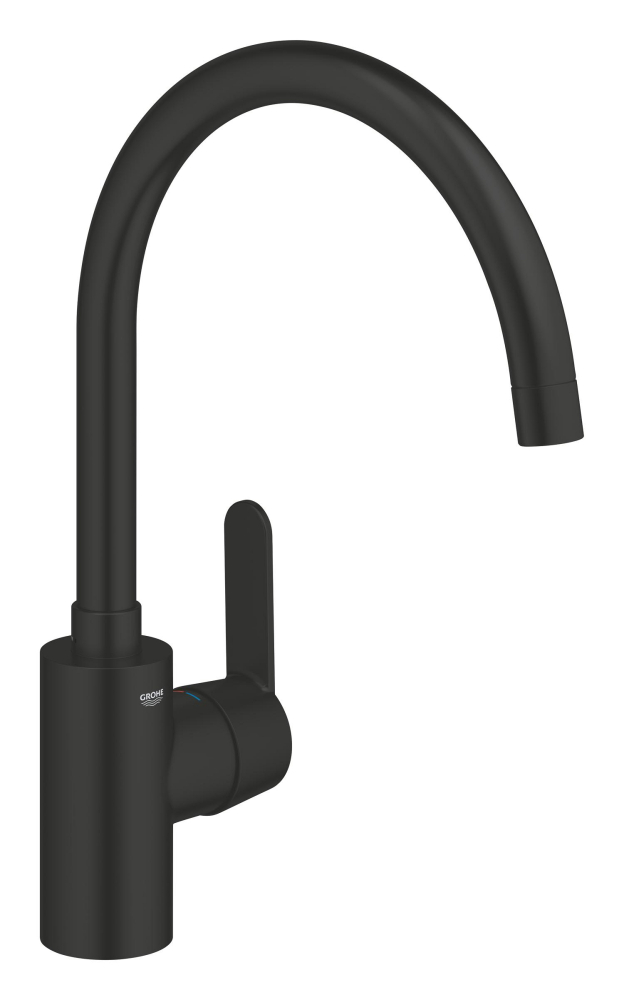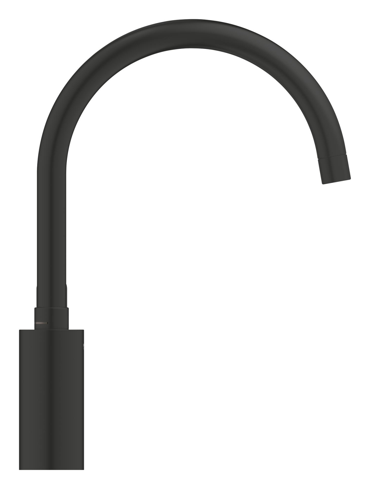 Baterie bucatarie Grohe Get, 3/8'', monocomanda, pipa inalta, tip C, cartus ceramic, pivotanta, limitator, negru mat