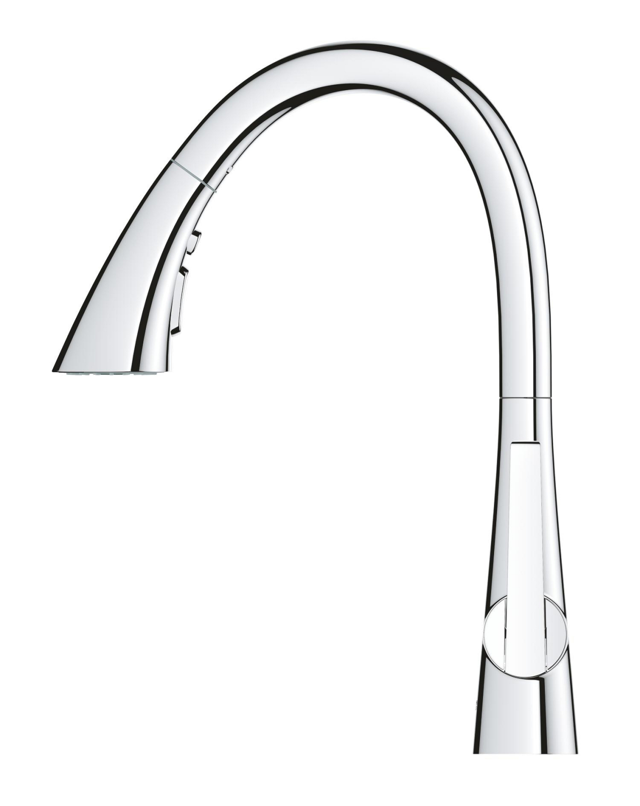 Baterie bucatarie Grohe Scala pipa tip C 3 functii, monocomanda, pivotanta, cartus ceramic, limitator de temperatura, dus extractabil, crom