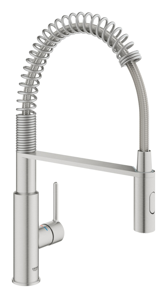 Baterie bucatarie Grohe Via Vosmo dus profesional pipa medie, pipa pivotanta, dus extractabil, 2 functii, crom mat