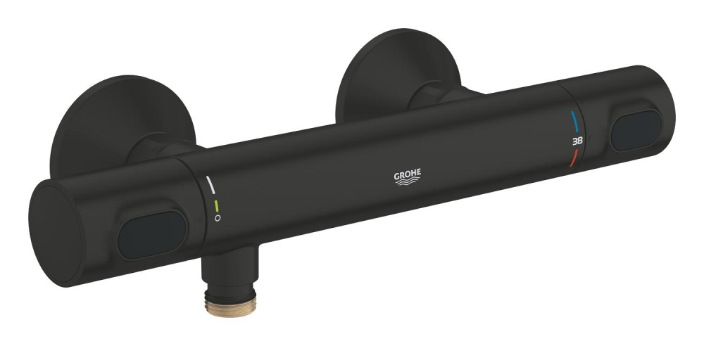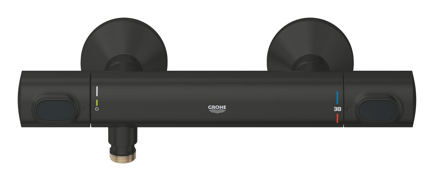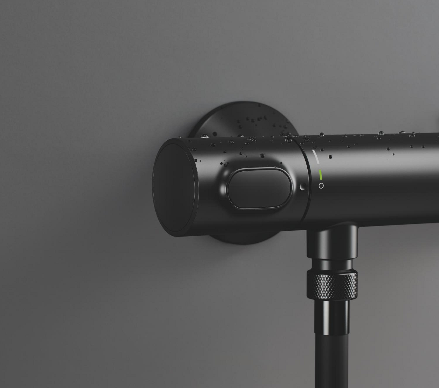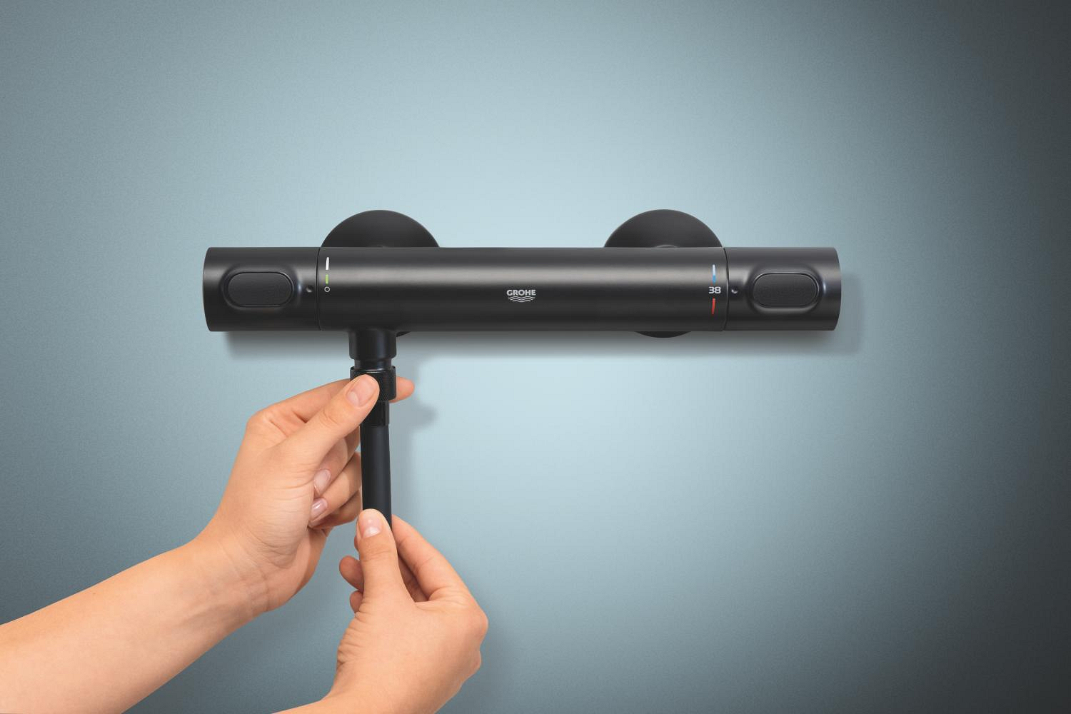 GROHE Baterie dus Grohe Precision cu termostat, cartus ceramic, montare pe perete, anit-oparire, negru mat