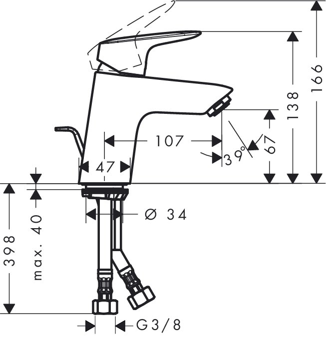 · Datorita distantei ComfortZone de 70 mm intre pipa bateriei si lavoar, ingrijirea personala devine mult mai usoara si de asemenea apa nu stropeste la contactul cu lavoarul.