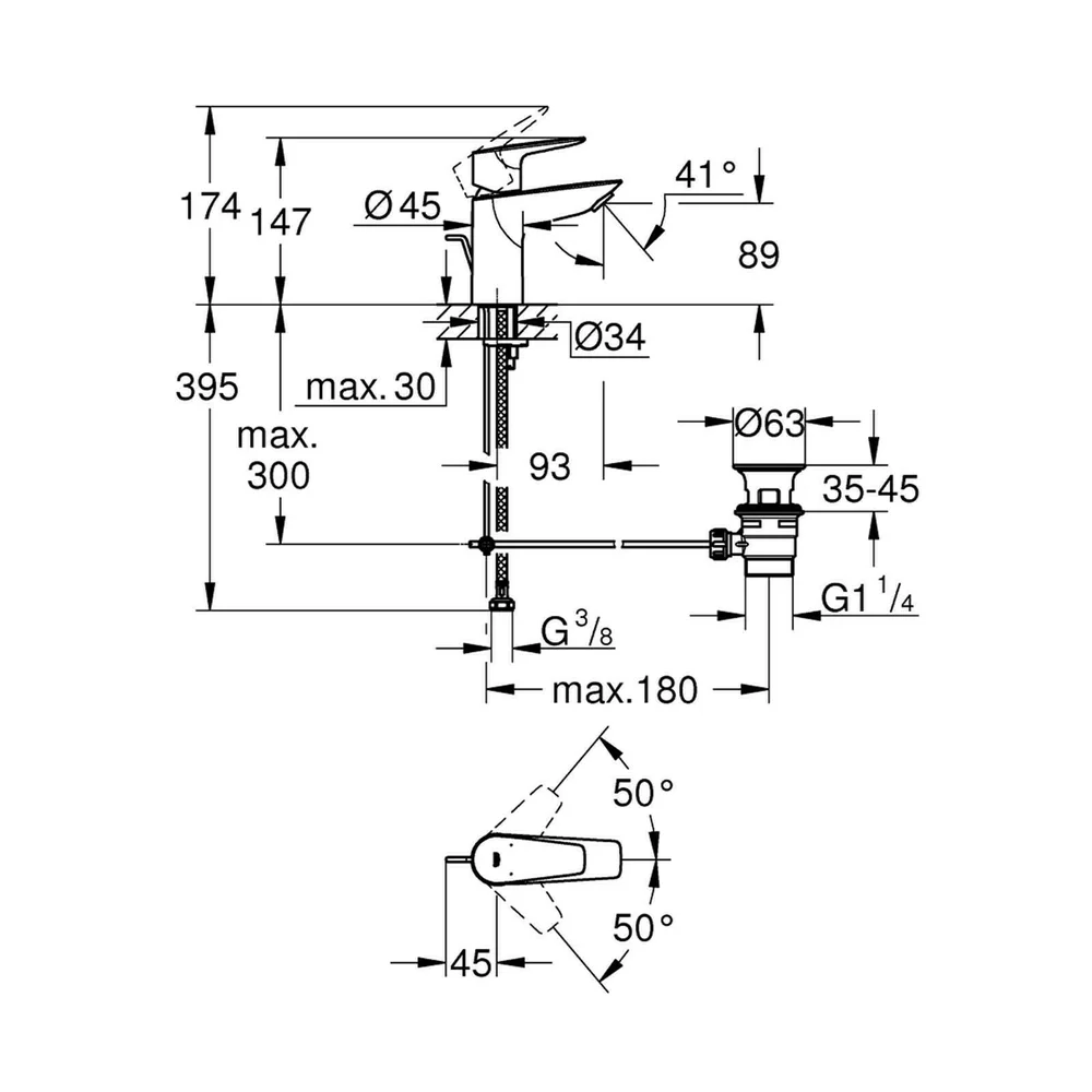 Specificatii tehnice Baterie lavoar Grohe BauEdge New S: