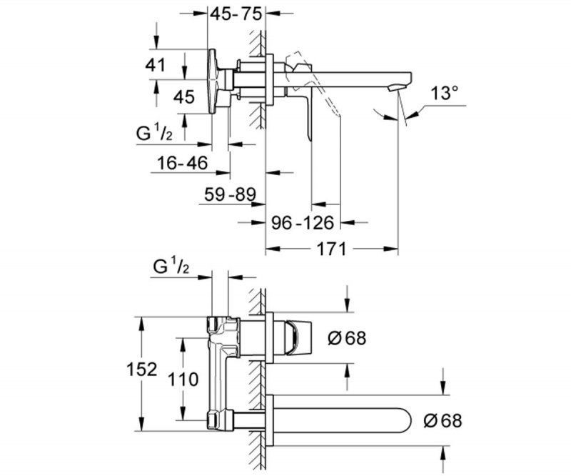 Baterie lavoar, montaj incastrat, corp incastrat inclus, Grohe Bau Edge