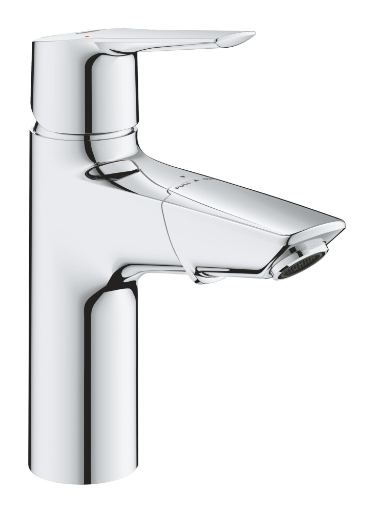 Baterie lavoar Grohe Start M dus extractabil, cartus ceramic, limitator de temperatura, limitator de debit, evacuare cu apasare, crom