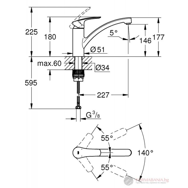 GROHE Baterie pentru cada, monocomanda, diverter, cromata, Grohe Eurosmart New