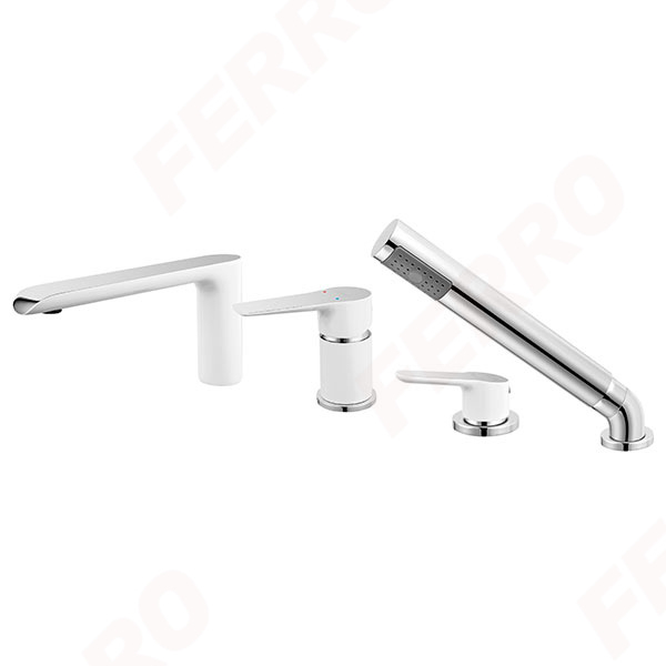 Baterie stativa cada/dus cu 4 gauri Ferro Adore, alb/crom