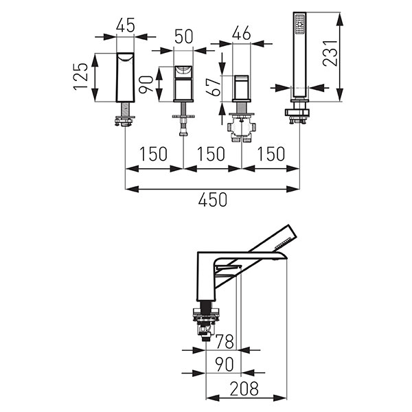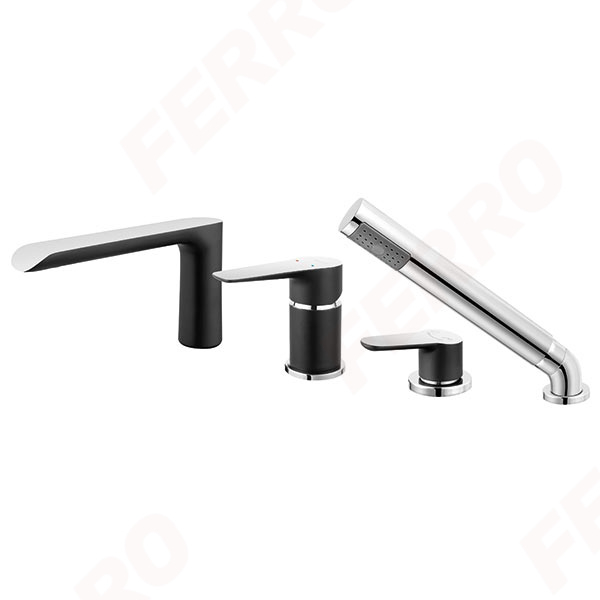 Baterie stativa cada/dus cu 4 gauri Ferro Adore, negru/crom