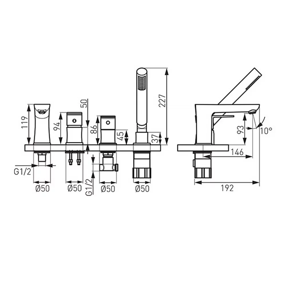 Baterie stativa cada/dus cu 4 gauri Ferro Algeo, crom