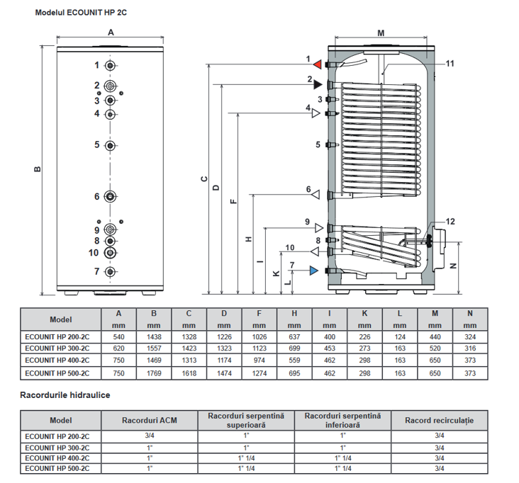 • Modelul Ecounit HP 2C este echipat cu 2 serpentine oferind posibilitatea de conectare la mai multe surse de încălzire.
