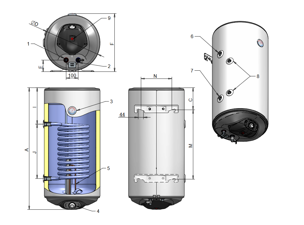 Diametrul ţevilor (Reţeaua Apă/Canal/Schimbător de căldură) | 1/2" / 3/4" |