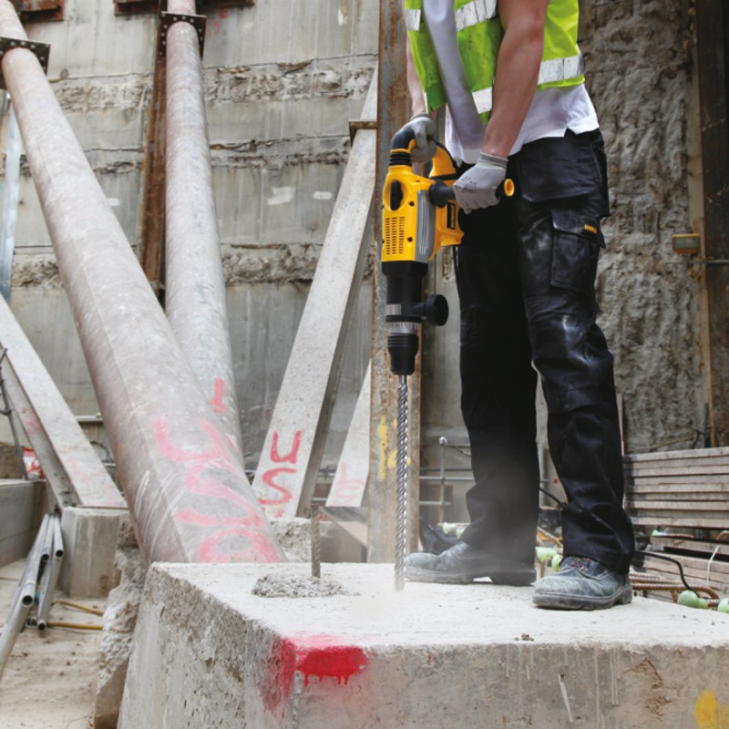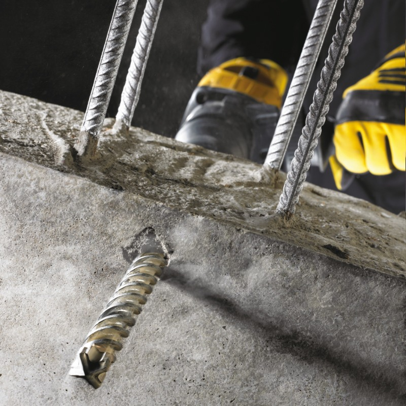 · Capul burghiului este format din patru cutite de taiere, proiectat pentru gauri curate, perfect circulare si gaurire constanta. Aceasta geometrie elimina practic riscul blocarii burghiului in armatura din beton.