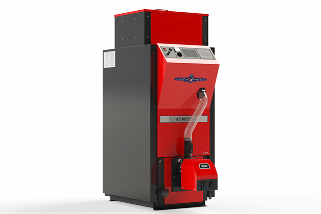 Cazan pe peleti Atmos, model D20PX 20 kw cu arzator, rezervor de peleţi, alimentator cu peleţi - 175 litri