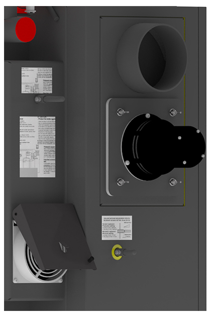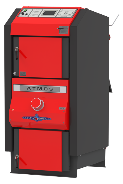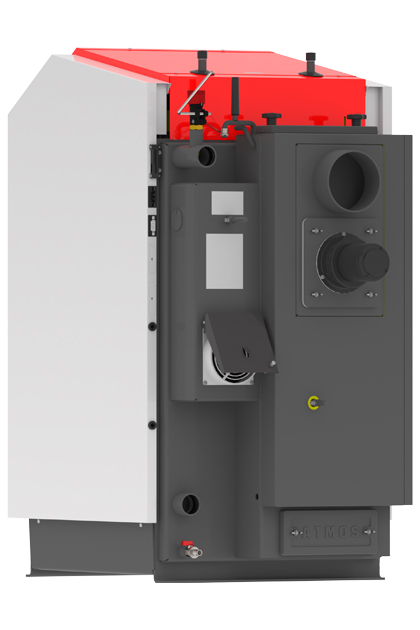 Cazan pe lemne Atmos, din otel cu gazeificare, model DC32GS 32 kw exhaustor de fum şi serpentină de răcire, cameră de ardere căptuşită cu ceramică
