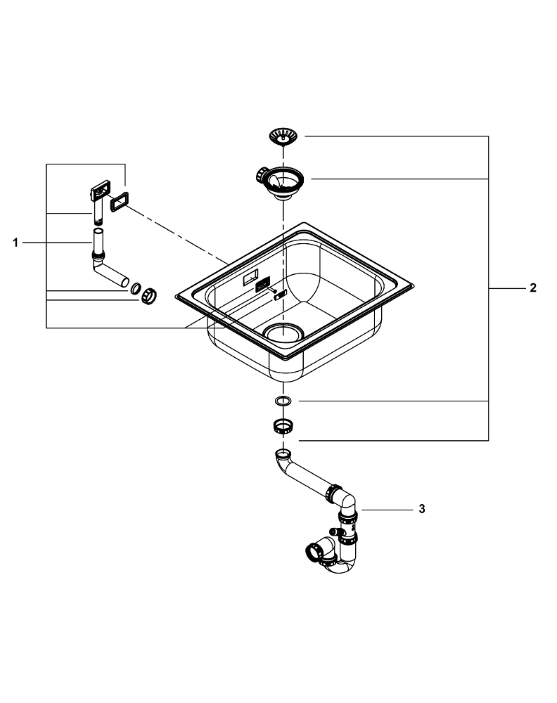 Chiuveta bucatarie Grohe inox K200, 533 x 458 mm, o cuva, montare pe blat, sistem de scurgere, inox satinat, crom