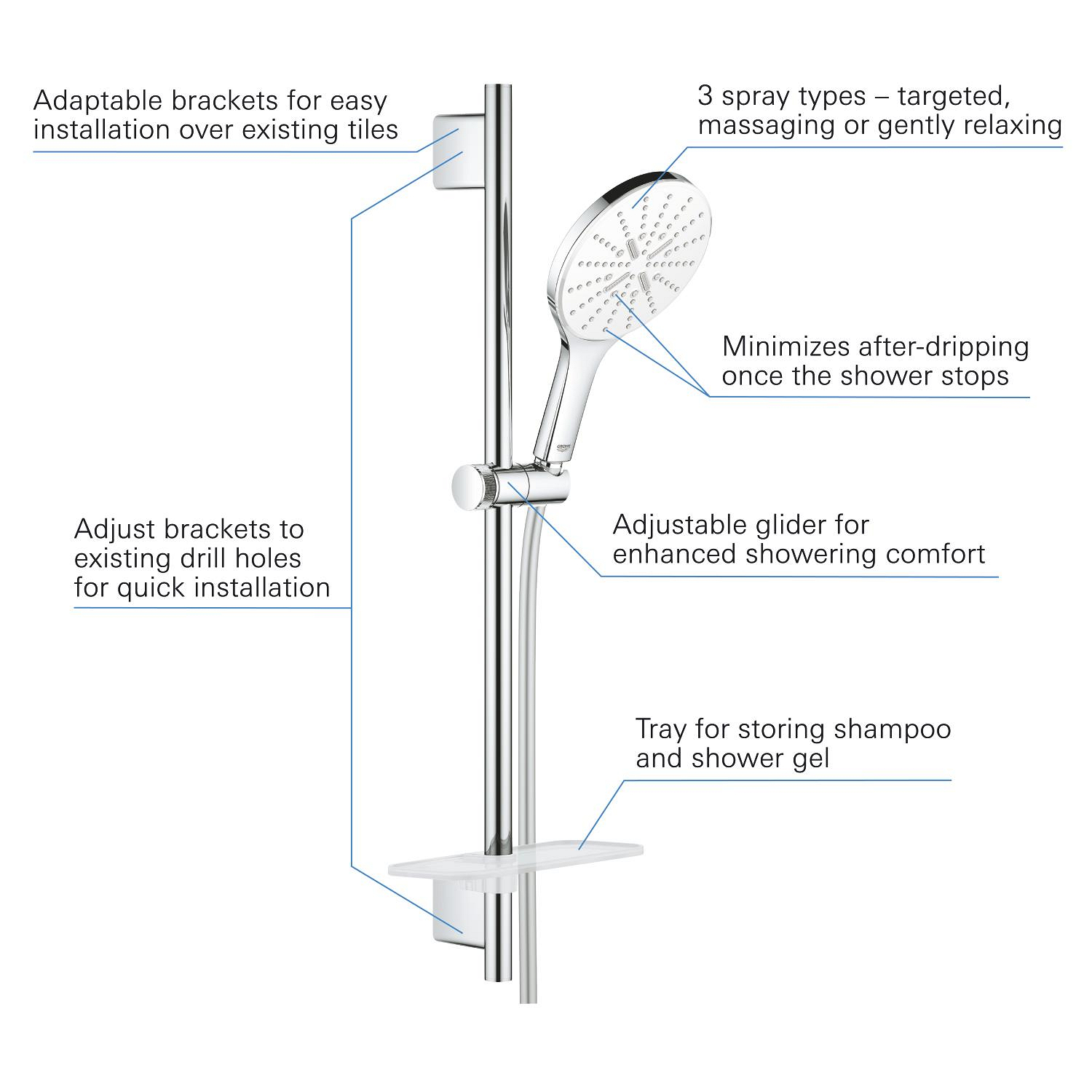 Unul dintre cele mai remarcabile aspecte ale acestui sistem de duș este versatilitatea sa. Cu cele trei tipuri de pulverizare, utilizatorii pot alege între un spray delicat, un masaj energizant sau un flux de apă puternic, adaptându-se astfel preferințelor personale. Acest nivel de personalizare transformă dușul într-un ritual de relaxare, ajutându-te să te deconectezi de la agitația zilnică.