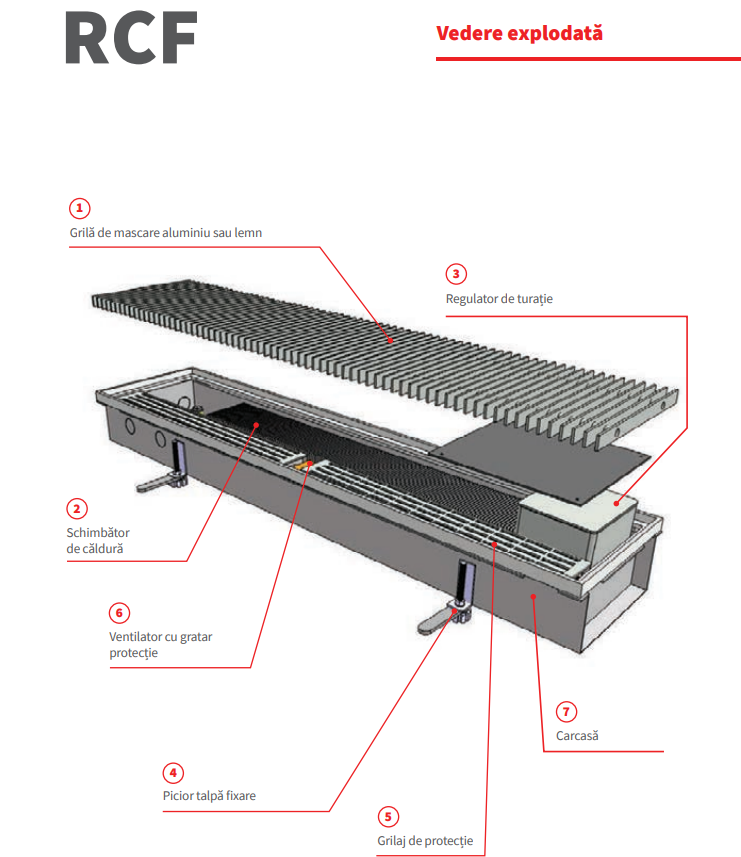 · Convectorul este instalat în pardoseală, iar după construirea pardoselei doar grilele de lemn sau aluminiu, vor rămâne vizibile într-o paletă largă de culori. Este soluţia ideală pentru crearea confortului termic şi pentru amenajările interioare care nu permit instalarea corpurilor de încălzire clasică.