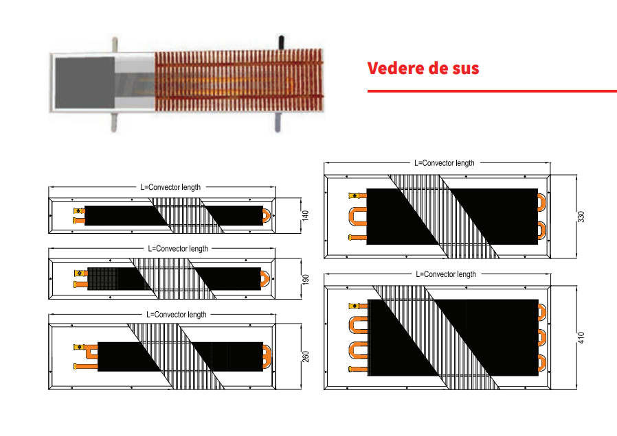 · Convectorii sunt compusi dintr-un schimbator de caldura, montat intr-o carcasa din tabla zincata. In partea superioara convectorul este echipat cu o grila transversala realizata din lemn sau aluminiu.