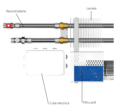 · Bateria de incalzire din tevi de cupru Ф15 mm sau Ф22 mm.;