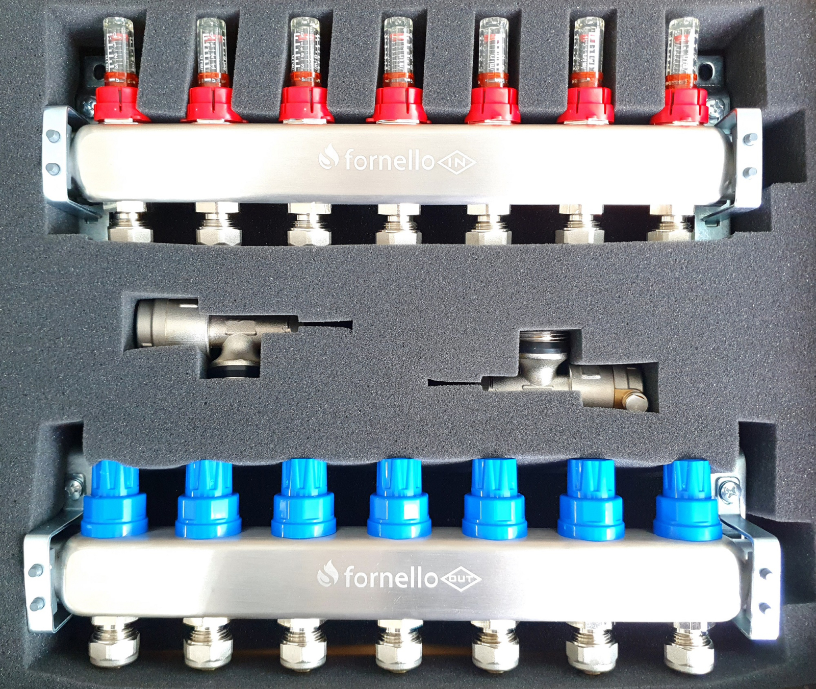Distribuitor-Colector Fornello cu debitmetre robineti si aerisitoare inox filet interior 6 cai 1 tol