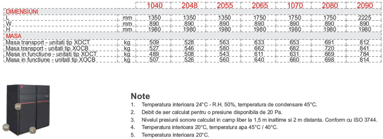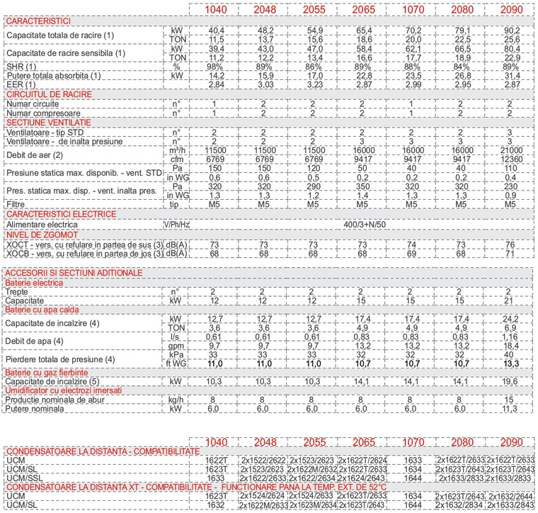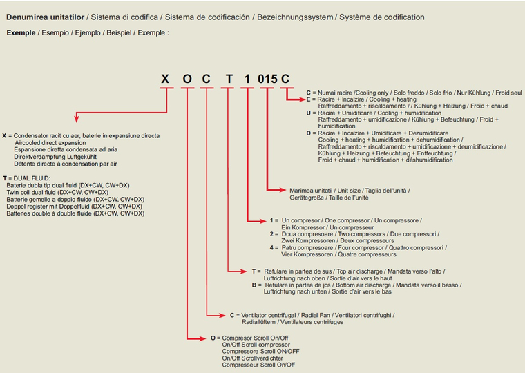 Se disting urmatoarele versiuni: · XOC.../C - doar racire in expansiune directa; · XOC.../E - racire + incalzire cu rezistenta electrica; · XOC.../U - racire + umidificare; · XOC.../D - control automat al temperaturii si umiditatii.