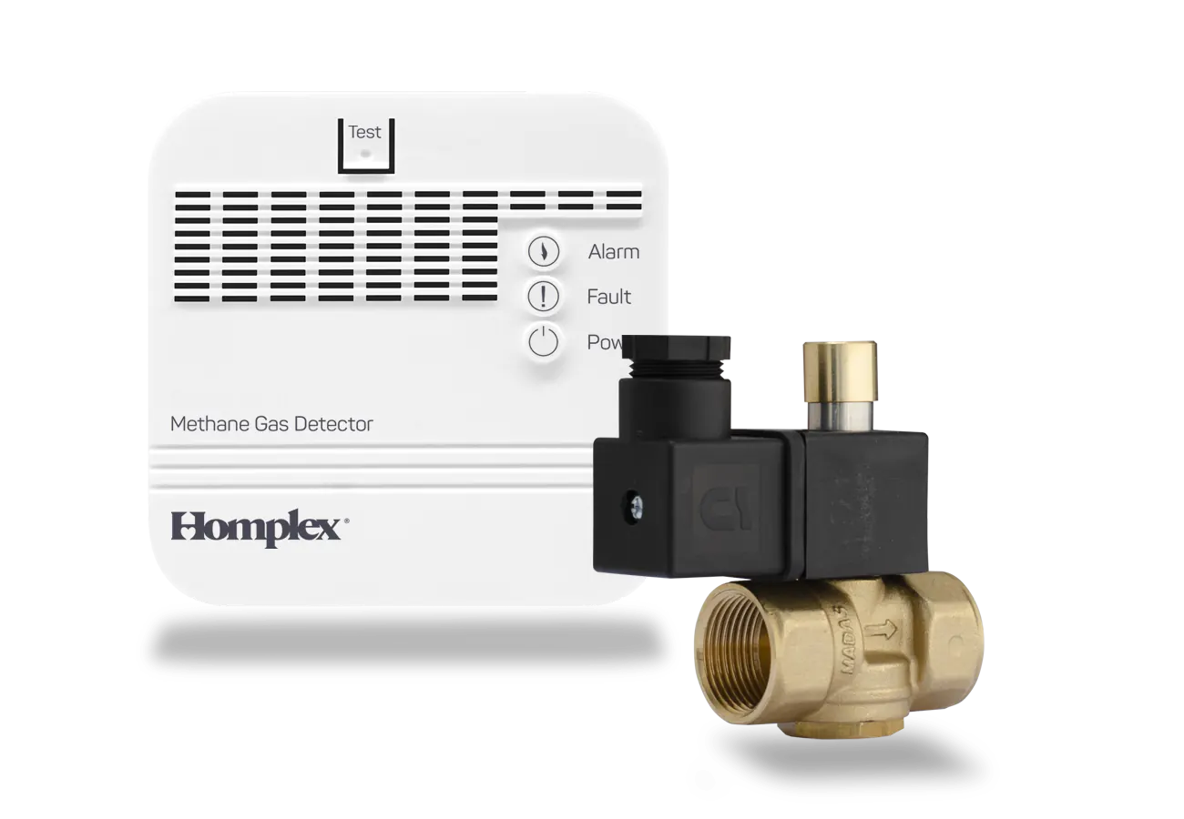 Homplex HD300 este un echipament de protecție complet compus din detectorul de gaz metan HD100 și o electrovalvă RAO de la Madas.
