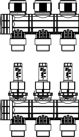 Modul de conectare cu debitmetru, extensibil modular, ieșiri ale circuitului de încălzire cu Eurocon 3/4", debitmetru reglabil până la 3,5 l/min, retur cu robinet de închidere integrat M 30 x 1,5 mm.