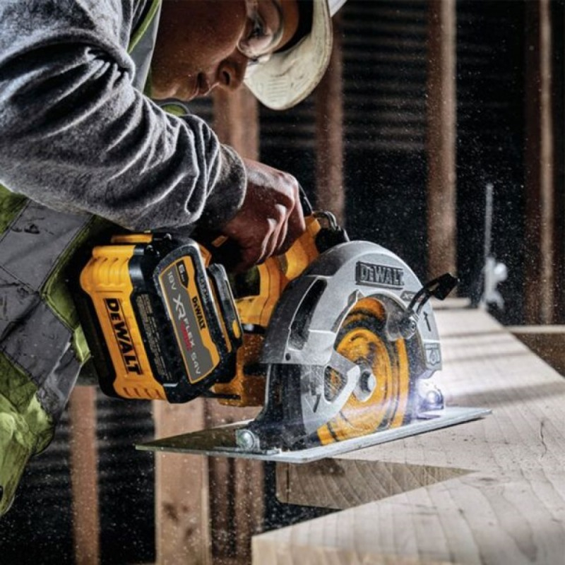 Fierastraul circular profesional DeWalt DCS573NT este compatibil cu acumulatorii Li-Ion 18 V XR FLEXVOLT, are diametrul discului de 190 mm si vine in valiza TSTAK. XR FLEXVOLT este o gama de scule electrice cu acumulatori de 54V ce ofera o autonomie si performanta de neegalat, pentru prima data, profesionistii pot face aplicatii cu adevarat dificile fara sa mai depinda de reteaua de electricitate. Acumulatorul DEWALT XR FLEXVOLT este singurul acumulator disponibil pe piata ce poate fi folosit la scula de 54V sau de 18V, fiind complet compatibil cu gama existenta de scule electrice XR. Circularul are motor fara perii pentru o durata de functionare extinsa, fiabilitate si durabilitate. Modul electronic al fierastraului ajuta la identificarea acumulatorului pentru a ajusta puterea si productivitatea utilizatorului.