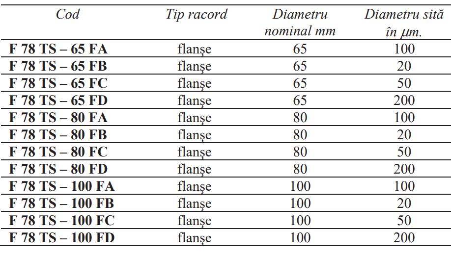 · Sită filtru: - oţel inox cu diametre de 20/50/100/200μm, funcție de model