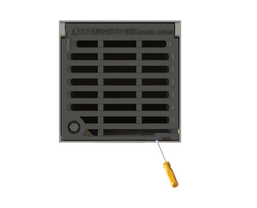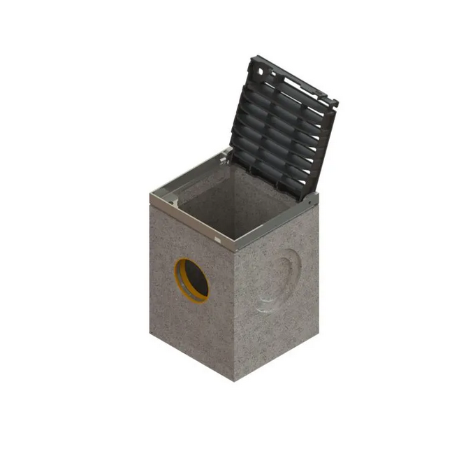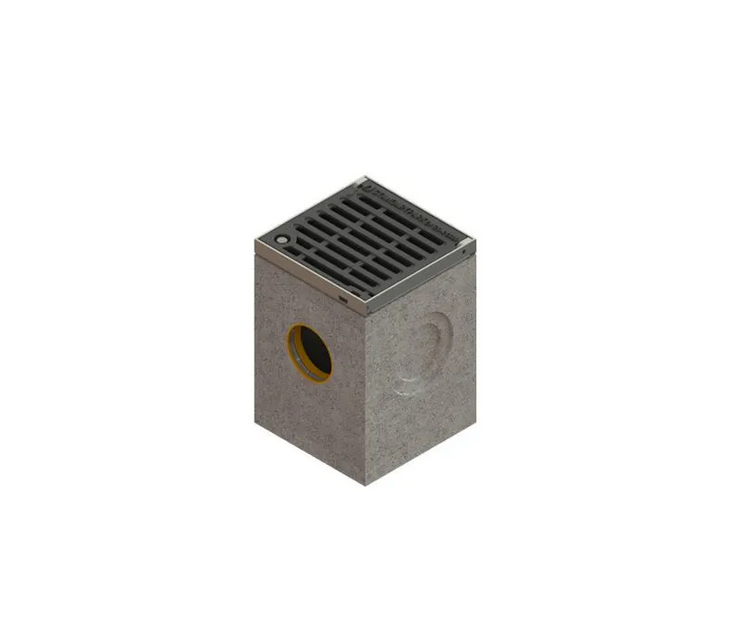 Kit gura de scurgere fibrobeton PRO muchii otel zincat gratar fonta D400 280x280x400 DN110/160 cu cos parafrunzar Vodaland gama Drain