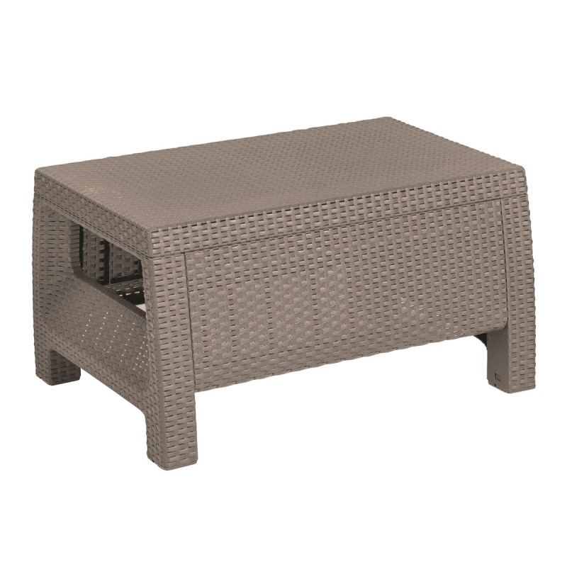 · Masuta Keter Corfu II cu design modern din imitatie de impletitura din ratan este fabricata din polipropilena de culoare cappucino, un material rezistent razelor UV si intemperiilor, umiditatii sau zapezii, comparativ cu ratanul natural.
