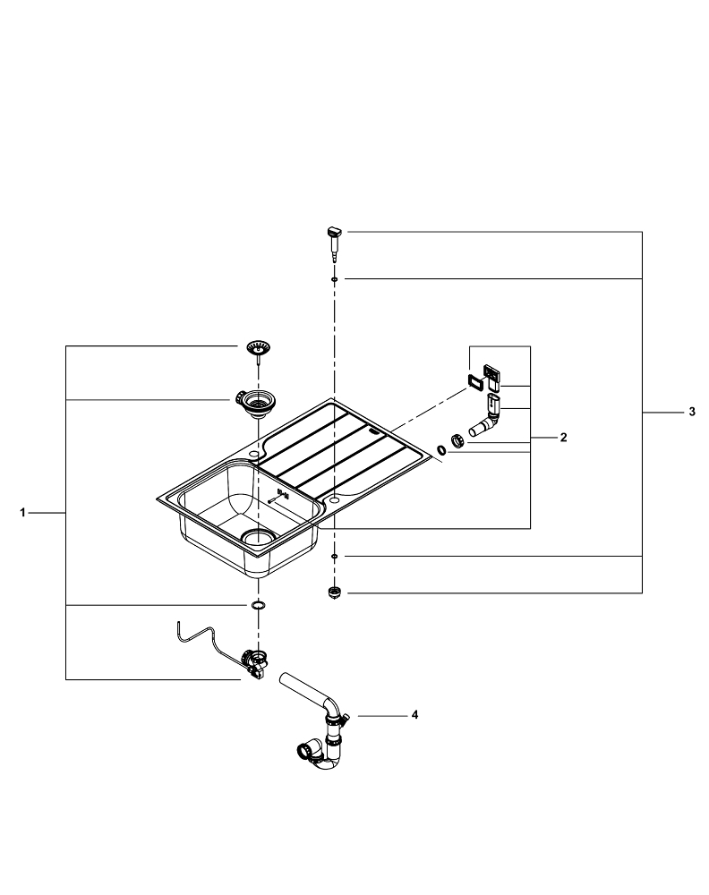 Pachet chiuveta de bucatarie Grohe Minta, 860 x 500 mm, montare pe blat, reversibila, baterie inalta, 3/8'', tip L, dus extractabil, crom