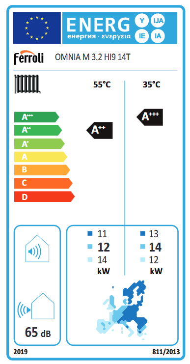 Clasa eficienta ERP încalzire Eficienta Sezoniera la temperatura medie (temperatura agent 55°C) | Clasa G-A** | A** 135 | |