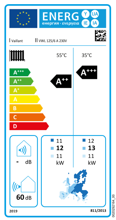 Iesire de caldura / Consumul de energie / COP for A7/W35 | 8,5 kW / 1,57 kW / 5,4 |