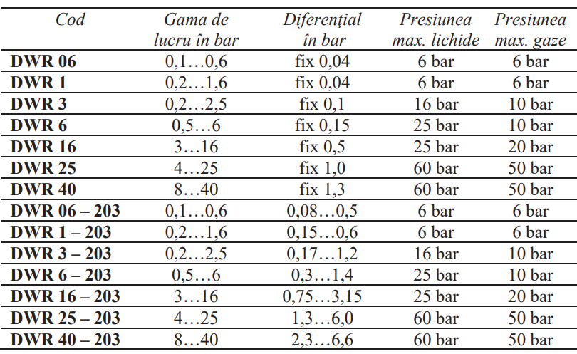 · Sensibilitate (diferenţial): – neajustabilă, disponibil şi cu sensibilitate ajustabilă