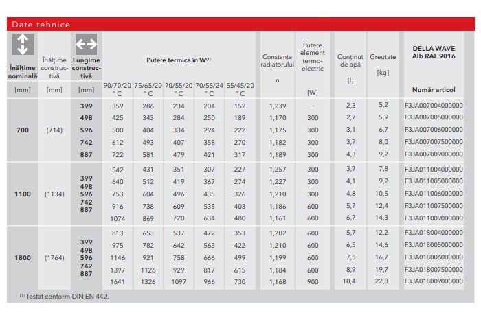 § Culoare radiator: RAL9016 / ALB;