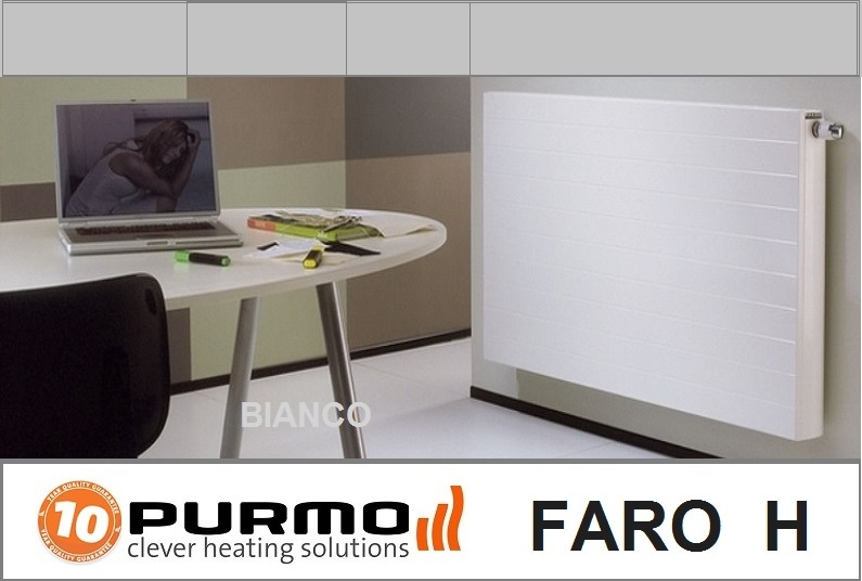 ü Radiatorul decorativ orizontal PURMO FARO H se remarcă prin panoul frontal neted cu striaţii orizontale decorative, cu finisare fină a muchiilor și grilă superioară proiectată într-un stil unic.