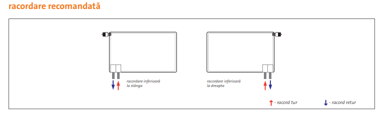 · Accesorii: radiatorul este prevăzut cu 2 console MCW-5, cu dibluri și șuruburi, ventil termostatic încorporat (la dreapta) și ventil de aerisire (la stânga).