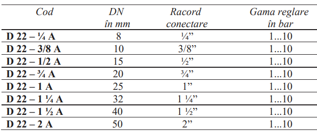 · Presiunea fluctuantă la ieşire nu influenţează presiunea reglată de la ieşire.