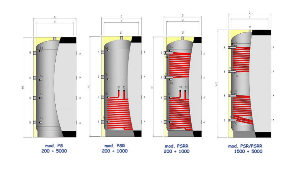 Rezervor acumulare/buffer din otel carbon cu 2 serpentine, izolatie flexibila, 4 bar, OMB model PSRR-RF - 3000 litri