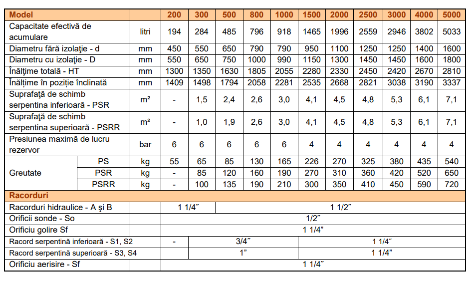 · Izolaţie termică o Modelele RG - poliuretan rigid îmbrăcat cu ABS cu grosimea de 50 mm până la 500 litri şi de 100 mm îmbrăcat în PVC de la 800 ÷ 5000 litri o Modelele RF - poliuretan flexibil îmbrăcat cu PVC cu grosimea de 50 mm până la 500 litri şi de 100 mm de la 800 ÷ 5000 litri Notă: la cerere se pot livra cu orificii de inspecție cu diametru de 220 mm sau 300 mm.