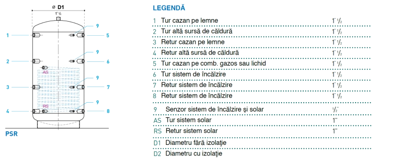 · Varianta PSR, dotata cu o serpentina interna, este adecvata racordarii la instalatia solara.