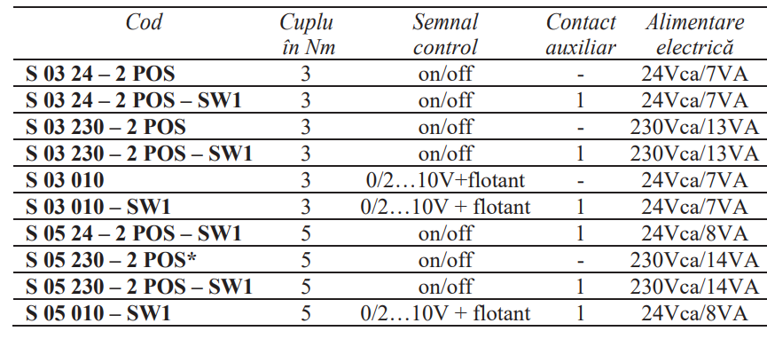 · Timp închidere: - acţionat electric 90 sec. modelele 0/10V şi 45 sec. cele on/off - sub acţiunea resortului arc 25 secunde
