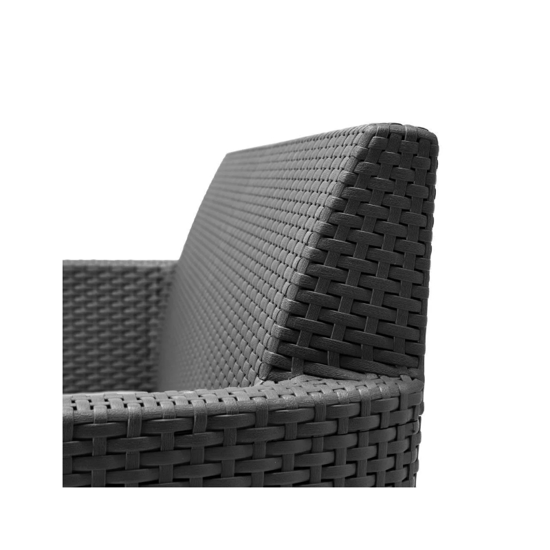 ü Textura eleganta a fotoliilor care imita ratanul, cotierele extrem de largi, pernele si spatarele fac aceste fotolii ideale pentru odihna in timpul zilelor de primavara-vara.
