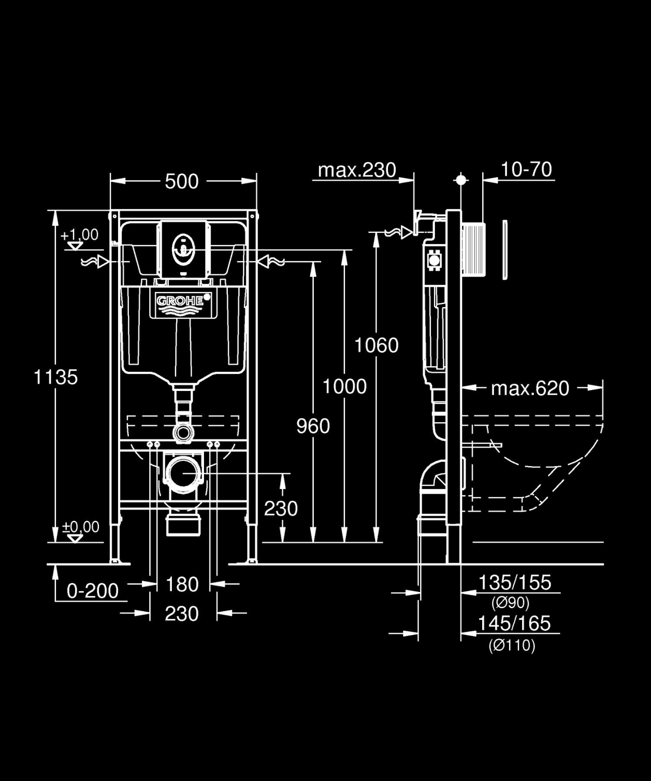 Set 3 in 1 rezervor WC Grohe Rapid SL 3in1 WC 3-6 l 1, 13m s, placa actionare cu infrarosu, cadru, ajustabil, otel