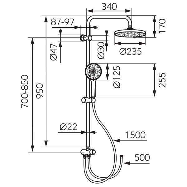 · bara metalica de dus fixa 950 mm cu distanta reglabila intre suporti - poate fi instalat in gauri deja existente in perete