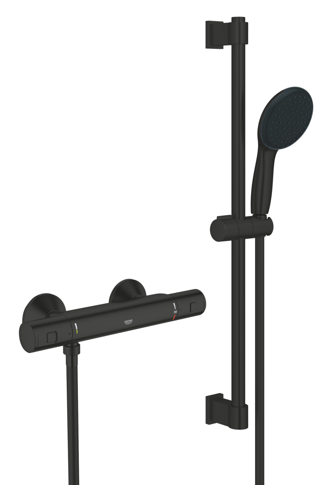 Set de dus Grohe Precision, aparent, termostat, coloana de dus, 600 mm, para de dus, 2 jeturi, negru